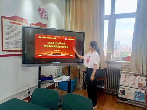 概要:继上次本科生第三党支部预备党员任梓豪和王茹玉带领大家学习《新时代中国特色社会主义思想实现了马克思主义中国化时代化新的飞跃》后,在6月7日进行了第二章的学习,本章的主要内容是“坚持和加强党的全面领导”,本章由本科生第三党支部预备党员于星添带领大家学习,本科生第三党支部邱马玥主持并总结发言。