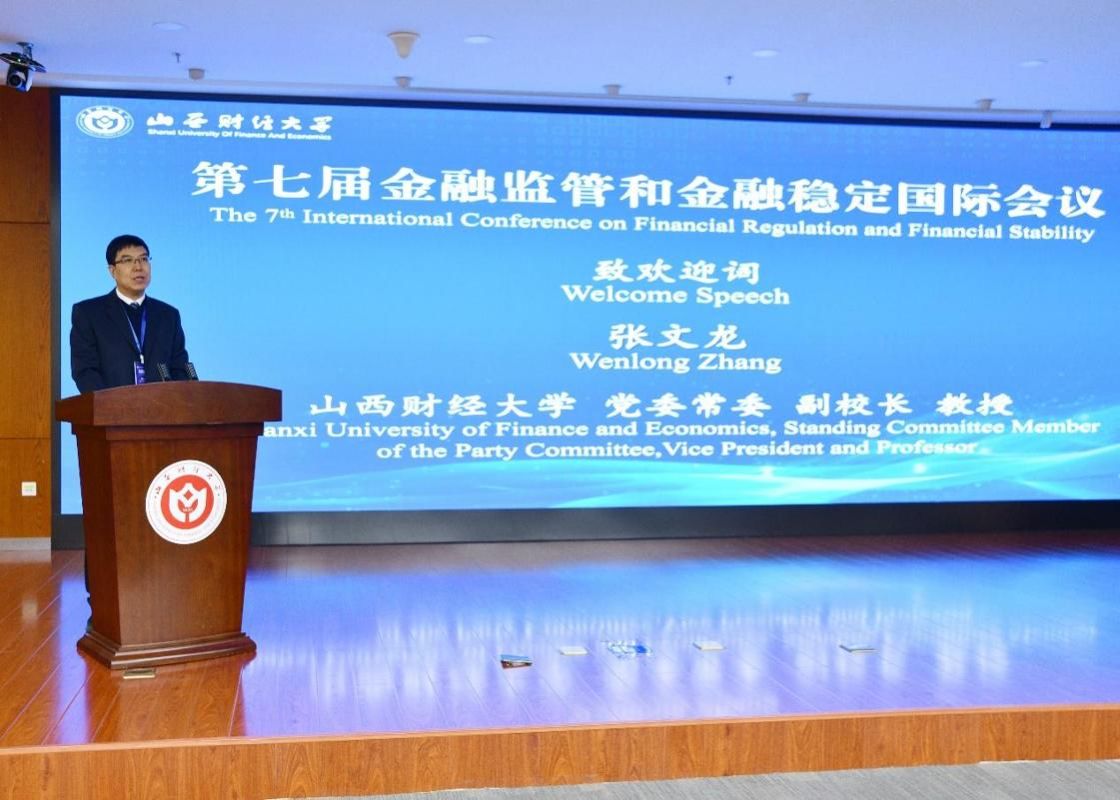 副院长崔婕教授主持,党委常委、副校长张文龙教授致开幕辞。张文龙教授对出席会议的领导和专家学者表示热烈欢迎,并着重强调,在全球经济金融面临诸多挑战的背景下,深化金融改革、防范金融风险、推动金融高质量发展至关重要。他指出,此次会议聚焦金融安全、金融防控等核心议题,对于激发市场活力、促进金融科技赋能、构建可持续的养老金融体系以及筑牢金融稳定防火墙具有深远意义。